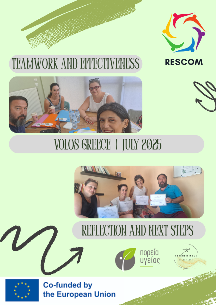 Τη Δευτέρα 7 Ιουλίου 2025 πραγματοποιήθηκε το πρώτο Πιλοτικό Εργαστήριο στο χώρο του Job Center που εδρεύει στη Λαχανά 5 και Λήμνου (Παλαιά Βόλου) με κύρια εισηγήτρια το Ιδρυτικό Μέλος της Πορείας-Υγείας Δρ Ιωάννα Γεωργιάδου (Ψυχολόγος, Συστημική Θεραπεύτρια και Επόπτρια). Στόχος ήταν η εξοικείοωση με το έργο του ERASMUS+ έργου Κοινοτική Ανθεκτικότητα και Συνέχεια για Νέους που Πλήττονται από Κρίσεις και Καταστροφές: RESCOM και ειδικότερα η παρουσίαση, εξάσκηση με το περιεχομένο και λήψη ανατροφοδότησης για το εγχειρίδιο Οδηγός για Εργαζόμενους στο Χώρο της Νεολαίας σχετιζόμενο με την προώθηση της κοινοτικής ανθεκτικότητας και της συνέχειας της κοινότητας από επαγγελματίες που υποστηρίζουν νέους που πλήττονται από κρίσεις και καταστροφές (18-30 ετών).